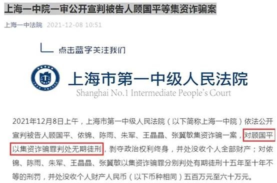 在今年12月8日,这起案件被公开宣判,其中主谋顾国平被判处无期徒刑,并罚没全部个人资产,而陈雨、侬锦、朱军、张冀敏、王晶晶则被判处10-15年刑期,并处60万-500万罚款。
