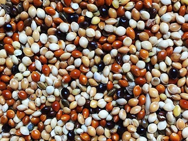所以说喂养鹦鹉呀,就给它喂“粗”一点,黄谷子、粟子、小米、油葵、麻子……之类的粗粮就是小太阳鹦鹉的主食,不要大量喂高油脂…高脂肪的食物容易出现肝脏问题。