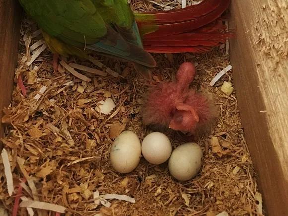 到了20天左右的雏鸟就可以增加一些辅助食品了,比如说增加一点青菜和水果,或者喂一点点泡发的小米碎末 可以调理肠道。