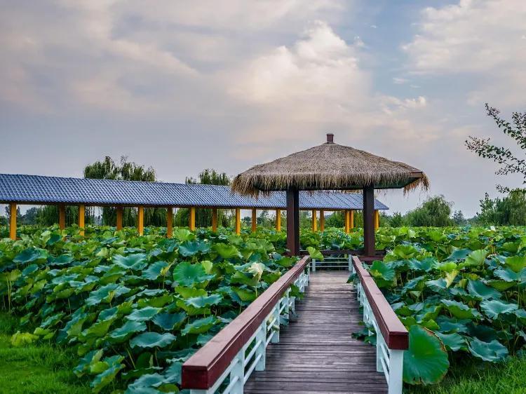 荷花荡景区地处淮安市金湖县东南,美丽高邮湖畔,三面环湖相拥,生态环境优美。景区内碧叶连天、荷花万顷,完美诠释了宋代大诗人杨万里“接天莲叶无穷碧、映日荷花别样红”的胜景,是集农业观光、休闲度假、科普教育、健康疗养为一体的综合性生态旅游景点。