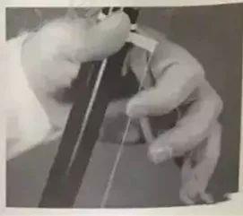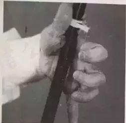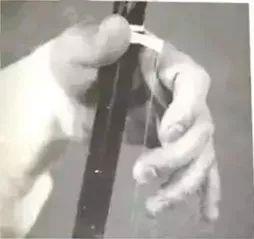 演奏上把位时,虎口应碰到千斤。如上图中虎口离千斤过远是不正确的(图示9)