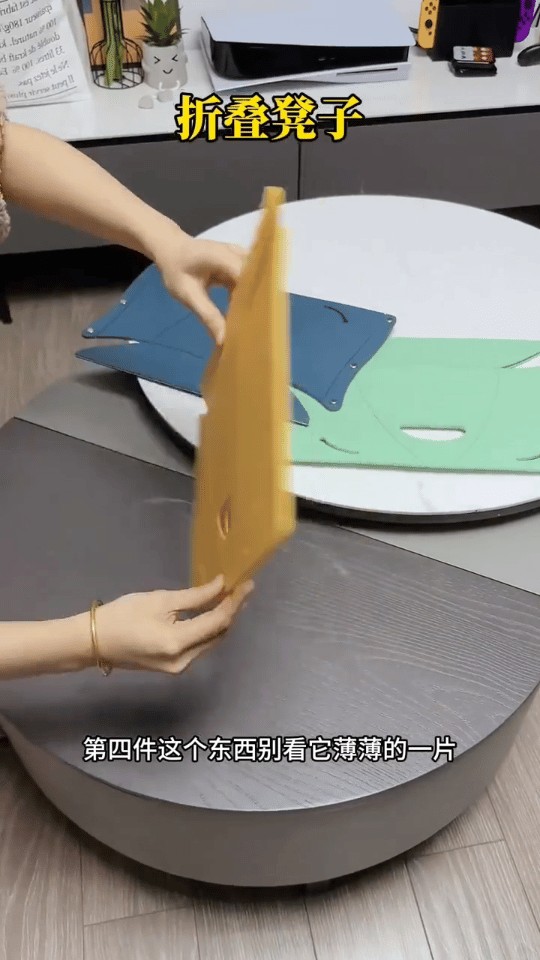 七、折叠凳子,这个东西别看它薄薄的一片,打开其实是一个小凳子,坐在上面很稳当,就算踩着它走来走去,承重力也特别好,装上提手还能装些小东西,脏了还很好打理。