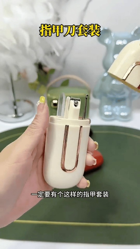 三、指甲套装,精致的男女孩子一定要有个这样的指甲套装,这应该是我见过颜值最高的一个指甲包了,用它剪完的指甲碎屑会自动收纳起来不费劲好清理,加长的挖耳勺,圆润不伤耳道,还有个美甲抛光棒,应该是女生必备了,小小的一个,随身带着也很方便。