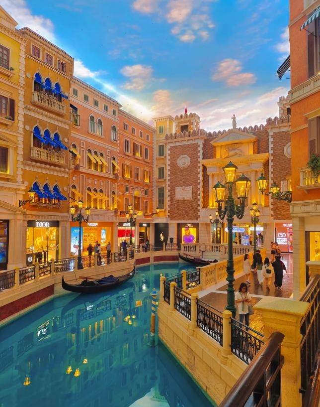上午:通过港珠澳大桥前往澳门,游览大三巴牌坊和议事亭前地。下午:在澳门威尼斯人度假村享受购物与娱乐的乐趣。晚上:前往官也街品尝地道美食,购买特色手信。