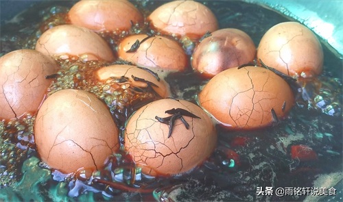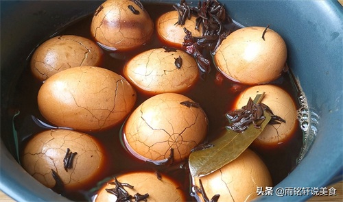 2想要茶叶蛋入味,首先把鸡蛋大头的一边敲破,大头的一边是气室,有一层膜保护着,蛋液不会流出来的;煮到8分钟时再用铲子敲得更碎一点,出锅后再放汤汁里浸泡4个小时以上,这样做出来的茶叶蛋入味好吃。
