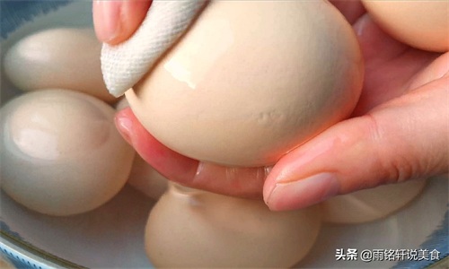 雨铭轩说:1鸡蛋表面有粪便和大肠杆菌,我们一定要把鸡蛋清洗干净了再煮成茶叶蛋,放入一勺盐浸泡有杀菌的作用,再用纱布擦洗干净。