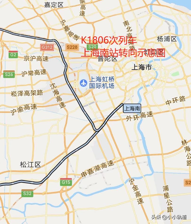 其中,列车在上海南站进行转向。
