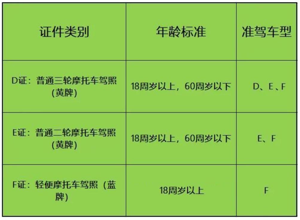 电动轻便摩托车:考驾照年龄限制为18周岁以上。60岁以上的老年人,包括70岁以上,都能考取F驾驶证。