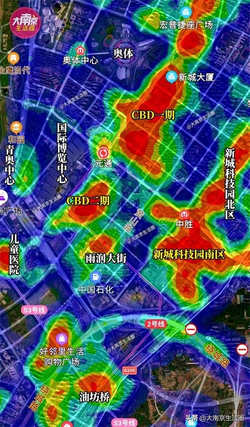 至于为何油坊桥一带人口明显更多,一方面是因为紧靠油坊桥站地铁口,同时也是前往板桥、岱山、江宁滨江等地的换乘点(相当于公交交通枢纽)。另一方面因为这里交通非常便利,大量的年轻人租住在这里,其中还有很多是合租,人口多是很自然的。
