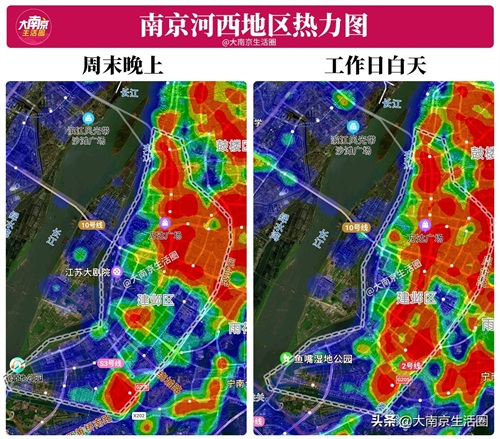 根据最新的热力图,周末晚间的时候,河西中部以及南部很多地方确实人口相对偏少,人口最多的是元通以及油坊桥附近。