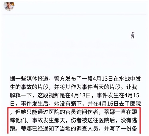 她说,她在事发后,一直关注着受害者的情况,她也主动联系了受害者的家属,表示了自己的歉意和愿意承担一切责任。她说,她承包了受害者所有的医药费,并且积极配合事件的调查和处理。她说,她并没有像有人所说的那样,第二天就去玩乐,而是去了医院,看望了受害者,询问了他的病情。她说,她非常后悔和内疚,她也非常担心和祝福受害者,她希望受害者能够早日康复,她也愿意为自己的错误付出代价。