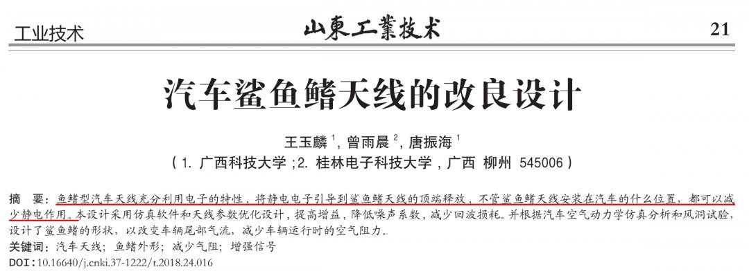 那根据《山东工业技术》期刊上的论文《汽车鲨鱼鳍天线的改良设计》中的说法: