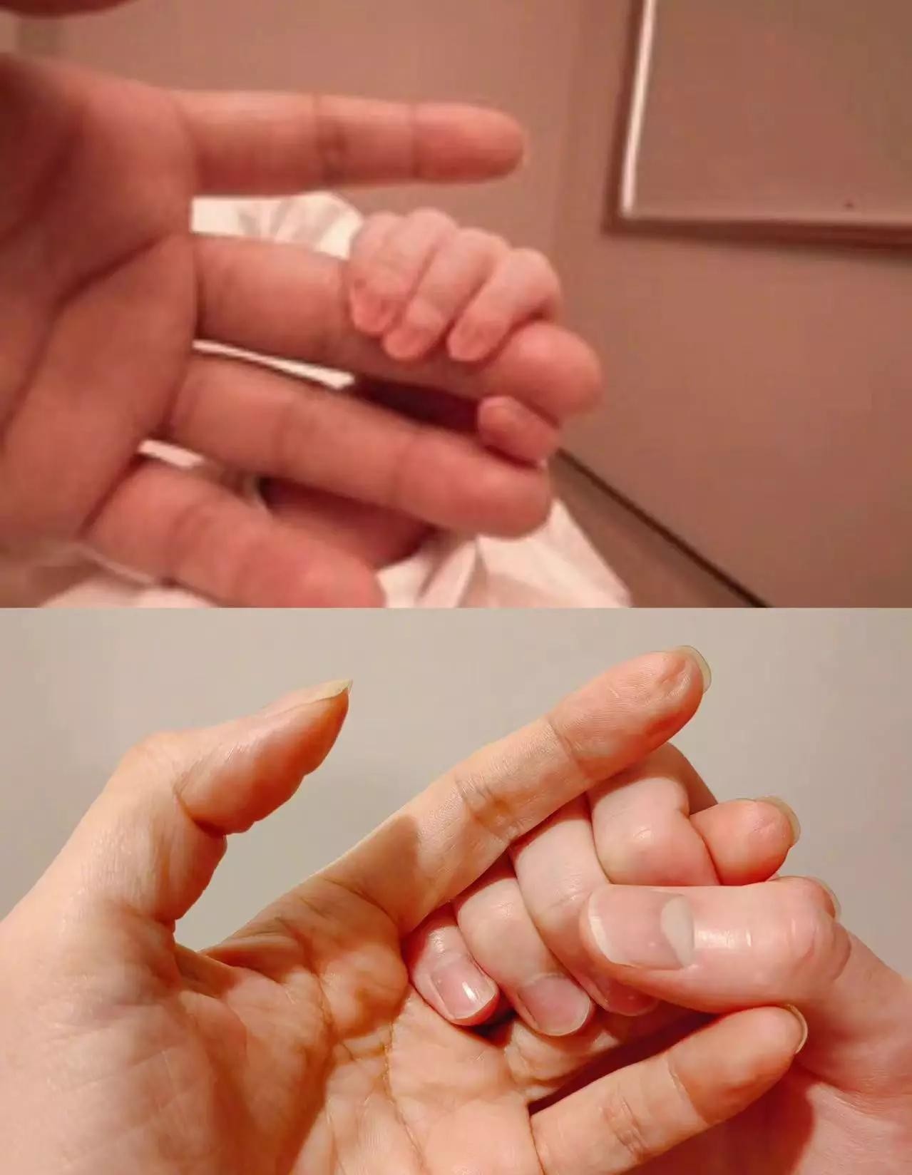 搭配的照片中,一张是张慕童刚刚出生时,用娇嫩的小手抓住妈妈手的模样,另一张照片则是长大后的他模仿同一动作,牢牢握住妈妈手的样子,母子俩的手看起来已经差不多大,让人不由感慨万分。