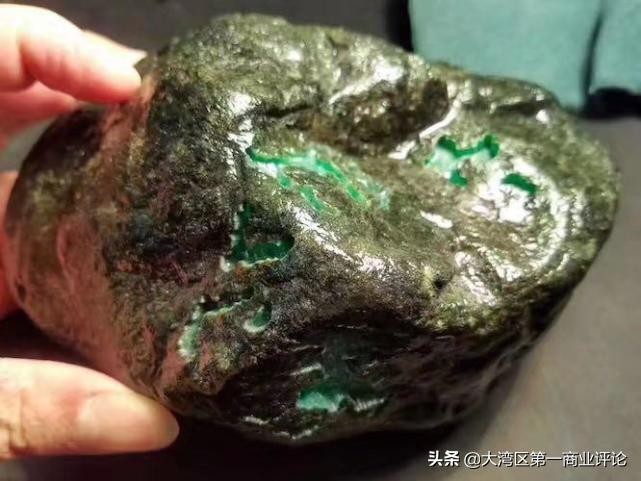 这种石头就是翡翠原石,表面包裹着一层风化的皮壳。行业把这种赌石游戏称作“一刀生,一刀死”,赌对了可能一夜暴富,要是赌错了甚至家破人忙。