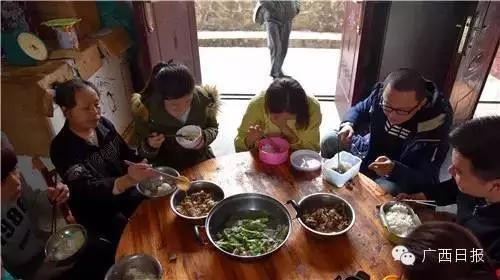 ▲江一燕与长洞小学老师一起吃饭,话说这小粉饭盒真可爱哈~