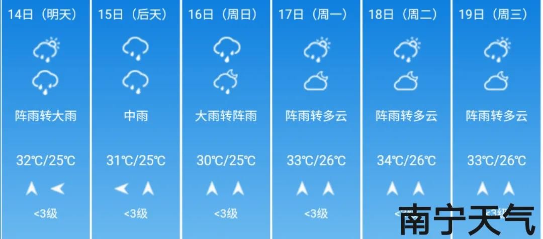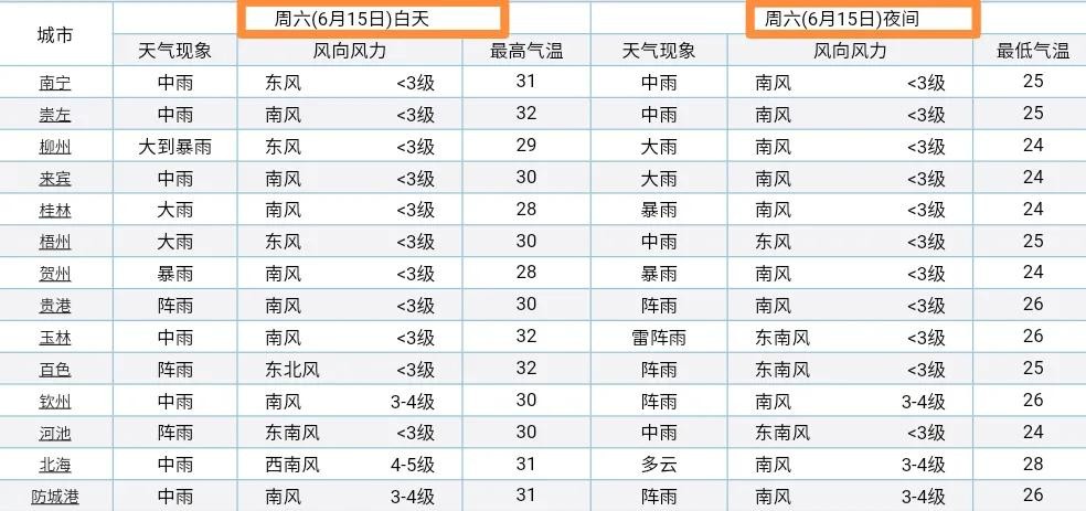 以下则是广西全区明后两天:6月14日~15日的具体天气预报
