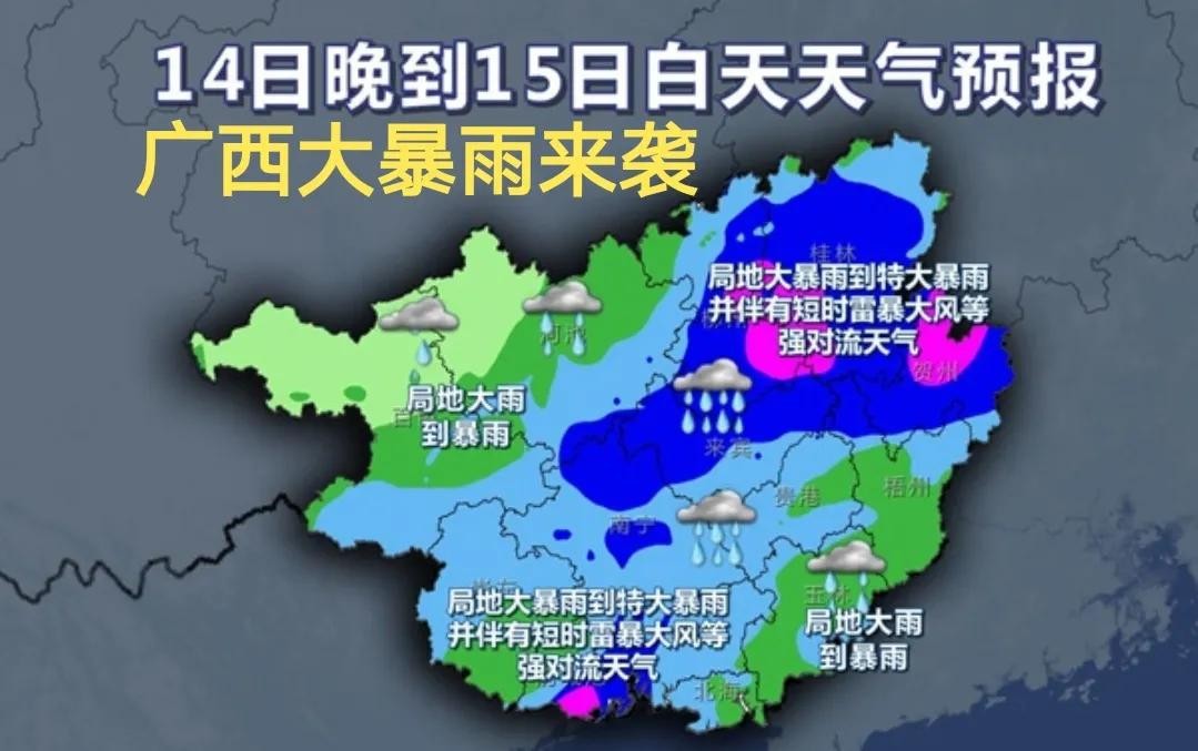 广西今夜起大暴雨强势来袭!暴雨中心已定!6月14~15日天气预报