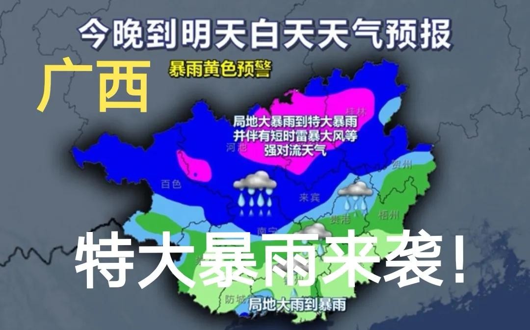 预计,降雨云团在今夜继续渗透南下,广西全区市县将先后迎来暴雨到大暴雨,局地特大暴雨的侵袭