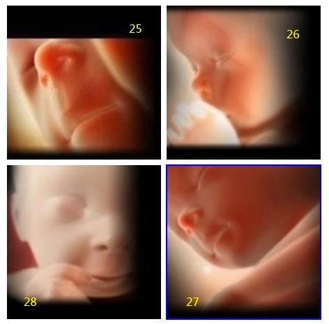 第26周:胎儿的眼发育完成,进行第一次睁眼。