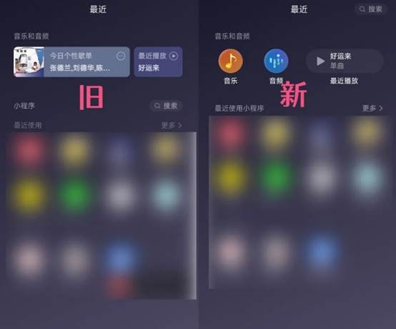 微信中的音乐播放功能有一些小调整,以前音乐界面会出现个性歌单和最近播放。