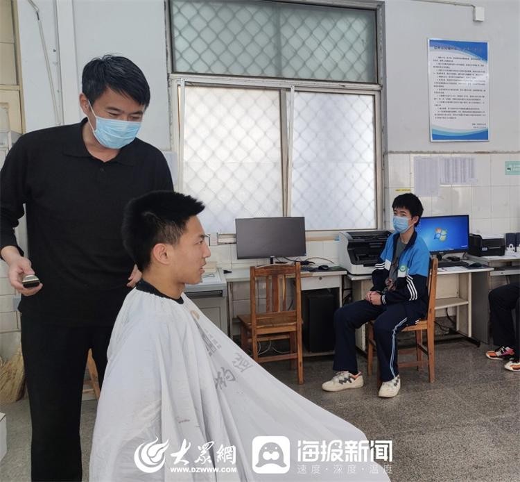 疫情防控期间,学生们不能外出理发,德州市陵城一中党总支委员李光荣凭借着在部队时学到的理发“手艺”,主动承担起了理发师的工作。