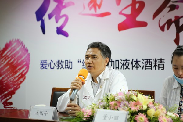 南医大友谊整形院长吴国平教授(右)为董小丽设计皮肤修复方案