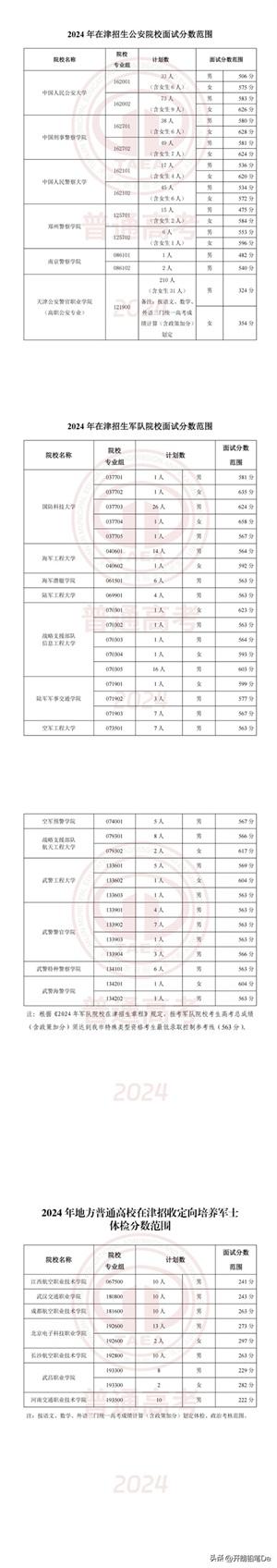 2024年各省军校军检分数线汇总(含男女面试分数线)