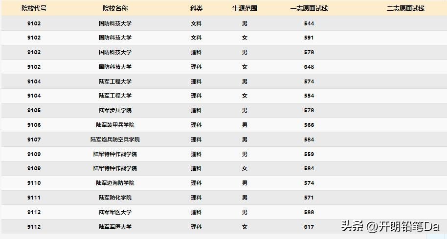 国防科技大学:男生最低521分、女生最低565分;