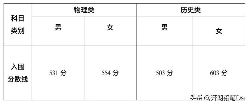 历史类:男生503分、女生603分。