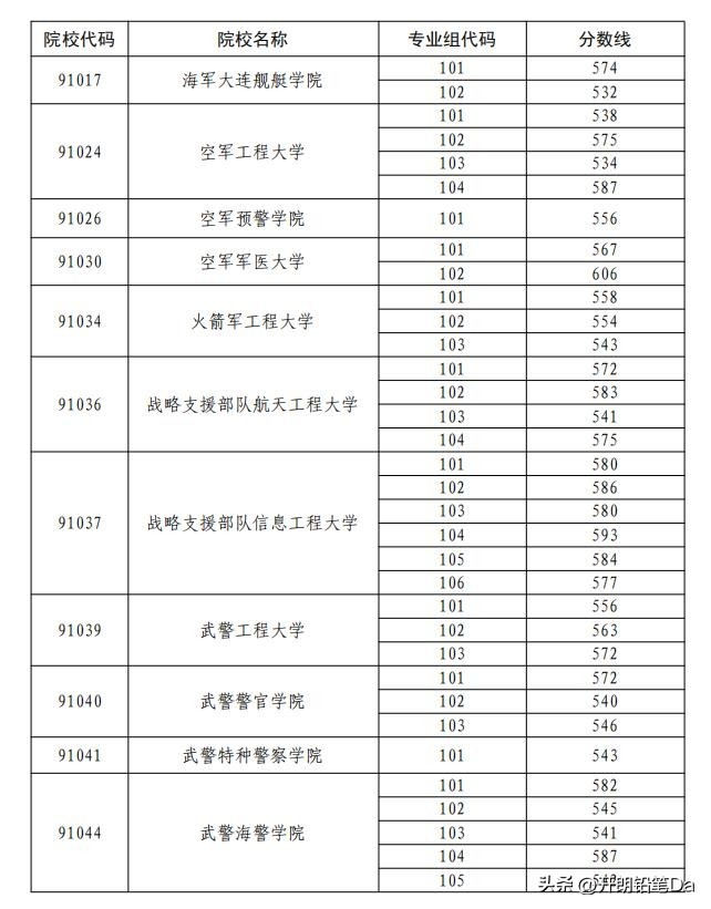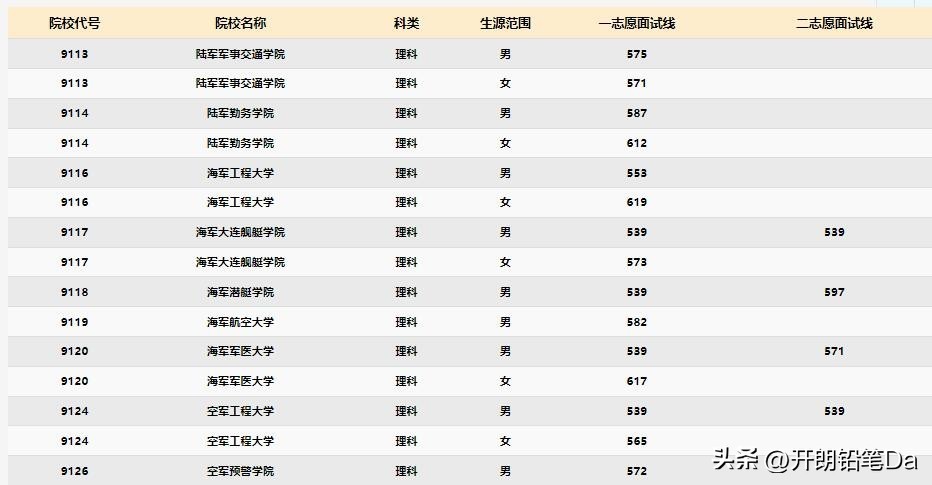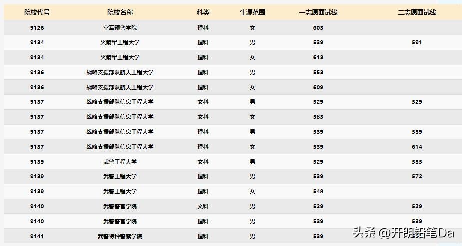 (2)军队本科批次院校