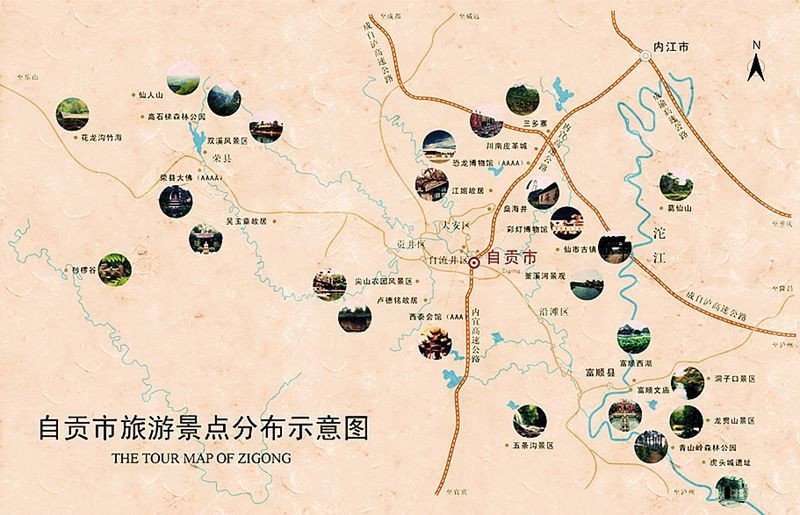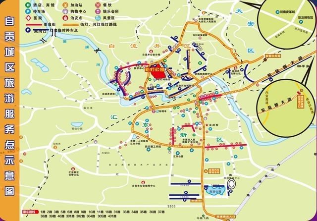 这两张图可以基本满足您在自贡期间的需求~