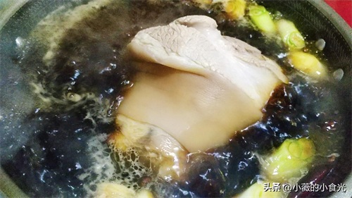 水沸腾后,撇去浮沫,将肘子控水捞出