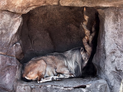 螺角山羊巨大的角呈螺旋状,夏季时,它们的毛短短的,可是到了冬天,毛就会长得很长,如同换上了一件保暖的毛皮大衣。由于遭到人类的捕猎和疾病的侵袭,已经濒临灭绝。
