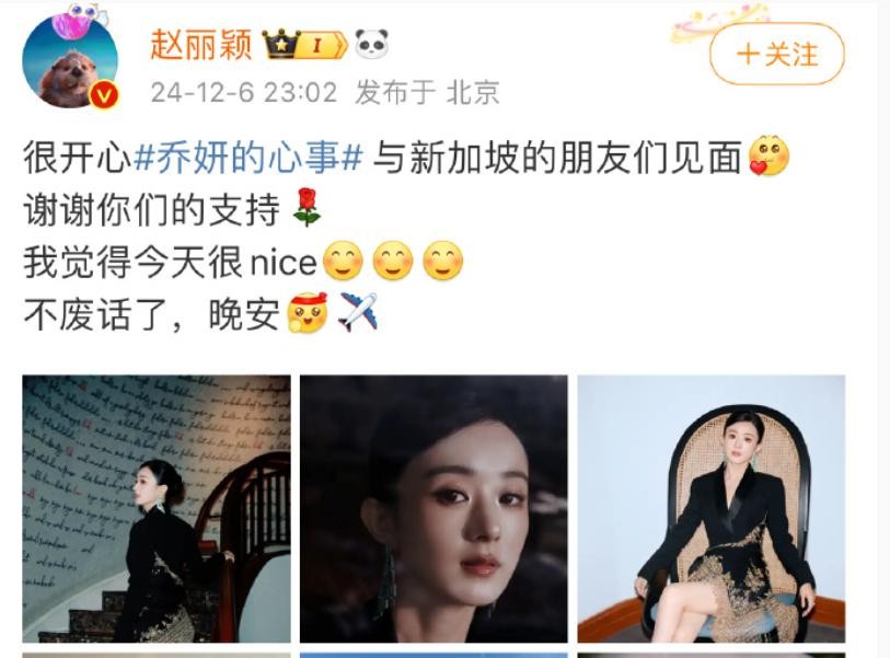 新电影发布会是在新加坡,可赵丽颖发文的IP却显示在北京,粉丝质疑是不是有人在操作赵丽颖的账号。