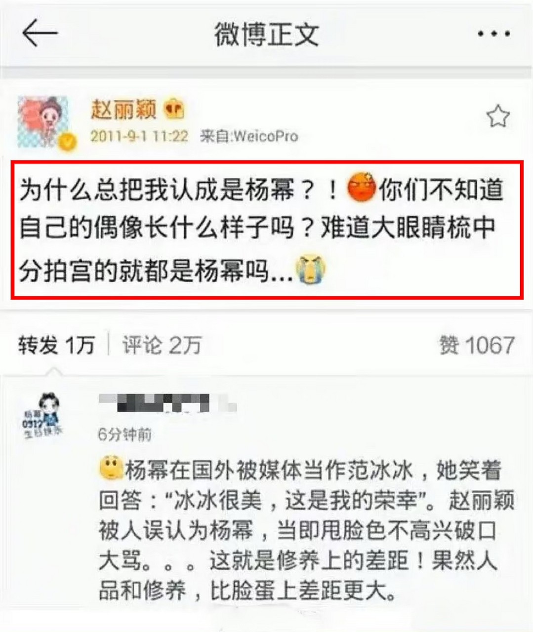 当年很多人见到赵丽颖都喊她杨幂,她干脆发文:“不要再把我认成杨幂了”。
