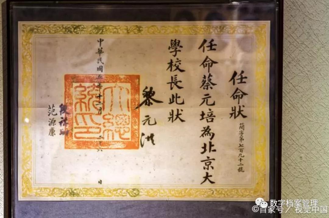 任命蔡元培为北大校长的任命状