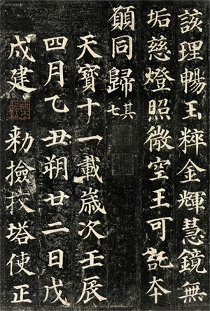 《多宝塔碑》全称《大唐西京千福寺多宝佛塔感应碑》,是颜真卿早期楷书的代表作品。此碑由岑勋撰文,颜真卿44岁时书写,徐浩题额,史华刻字,于天宝十一年(752年)立碑。此碑被誉为“楷书极则”,以“秀美刚劲、清爽宜人”的特点在书法艺术领域占据重要地位。