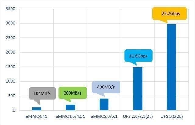 在行业内,现行的存储标准大致可以分为eMMC与UFS。而eMMC因为技术方面的天生劣势,所以并没有太大的提升空间。但是对于UFS而言,经过多年时间的升级迭代,现在行业中存在着UFS 1.0、UFS 2.0、UFS 2.1以及UFS 3.0三种标准,其中,UFS 3.0是在2018年1月最新发布的,性能比前代有了大幅的提升。