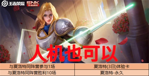 当兑换活动开启时,玩家们就可以并且夏洛特的信物,免费获得兑换下落的。当然,这个信物是有概率获得的,并非是百分之百获得。因此,如果只是这一个途径的话,可能会有玩家并不能免费获得这个英雄不要着急,还有两个免费途径。