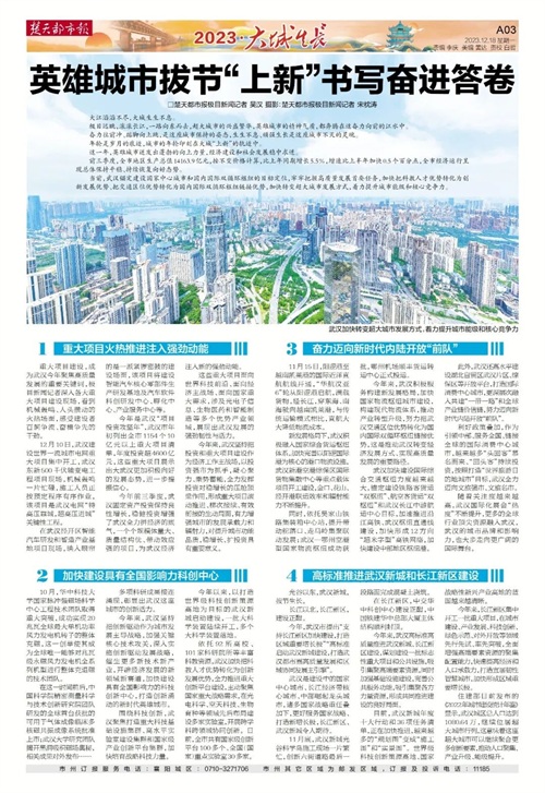 继2021、2022连续推出“大城生长”致敬礼后,武汉市委宣传部、楚天都市报·极目新闻今起联合推出《2023·大城生长》年度策划,致敬奔向未来的英雄城市!