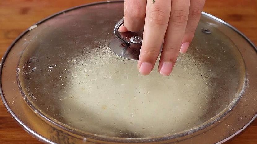 8、电饼锅烧热倒油,油热之后,下入锅贴,把底部煎到金黄之后咱们加入水淀粉,盖上盖子煎7分钟,一道非常美味的锅贴就做好了。