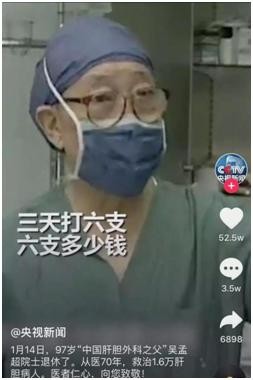 今年1月14日,吴孟超先生退休了。在网络上,这则消息瞬间获得大量点赞。