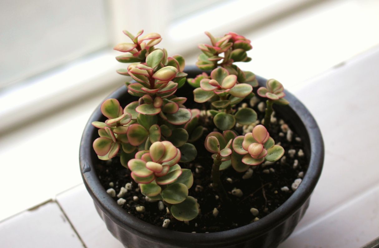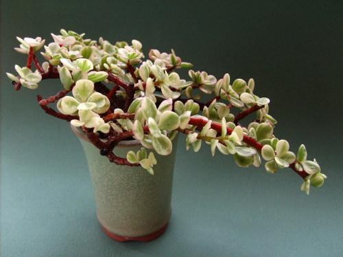大家对它如此之爱也并不奇怪,首先它的枝干古雅苍劲,叶片晶莹如玉,加上部分叶片出锦,也就是说它的部分叶片就会变成晶莹的粉红色,和古雅枝干互相映衬,着实是美不胜收,如果能够合理的修剪就是一盆绝美的小盆景,它的观赏价值就会倍增,下面就简单说说雅乐之舞的一些问题和朋友们交流一下,希望能对大家有所帮助吧!