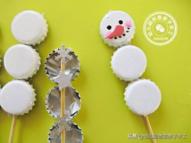 想更漂亮一点的话,可以在背部的小竹签上粘贴一些雪花小装饰。