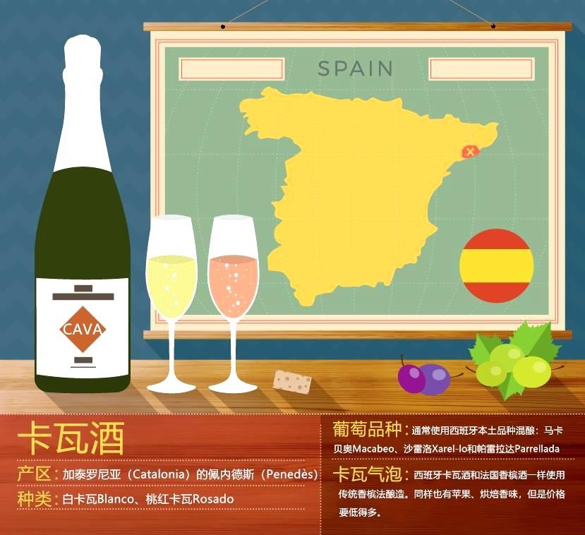 卡瓦(Cava)是产自西班牙的一种起泡酒,主要产地是西班牙加泰罗尼亚(Catalonia)的佩内德斯(Penedès)产区。