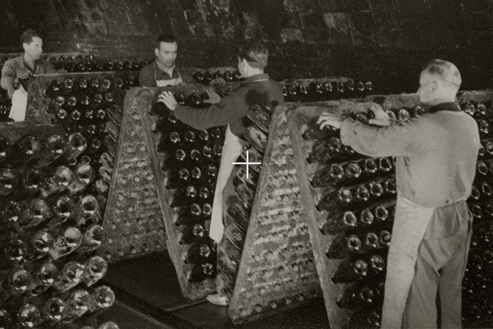 但是,我们喝酒的时候,可不想有那些酵母渣飘在里面!所以这个时候为了让这些卡瓦酒更干净清澈,就需要另一个过程叫作“转瓶除渣”。