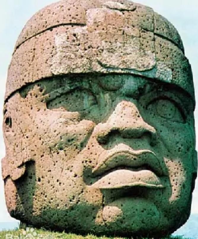 奥尔梅克文明曾留下了大量的巨石雕像,这些巨型的人物雕像,都是厚嘴唇、扁鼻子,还带着奇特的头盔。从面部特征来看的话,极其像非洲人,而且应该还是这个文明的国王。