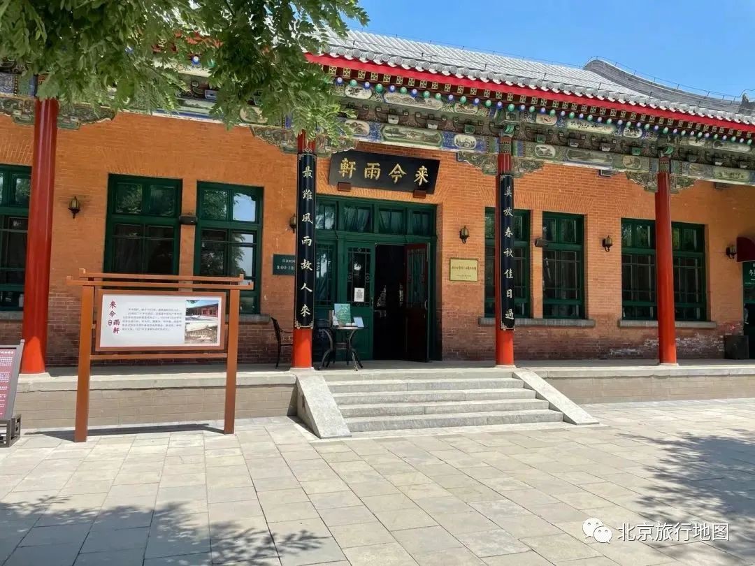 从中山公园正门进入,沿东侧长廊曲折北行,在古柏群旁,古朴典雅的四廊八柱式传统建筑,就是始建于1915年的来今雨轩茶社,这里是中国共产党创建时期先进知识分子开展革命活动的场所之一。