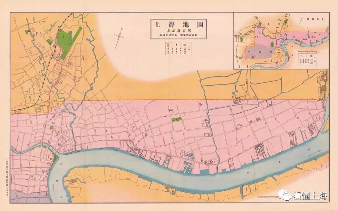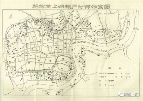 从这张《解放前上海棚户分布示意图》来看,上海历史上大部分棚户区都在租界之外,且紧靠着租界的边缘分布,有一小部分伸入租界以内。