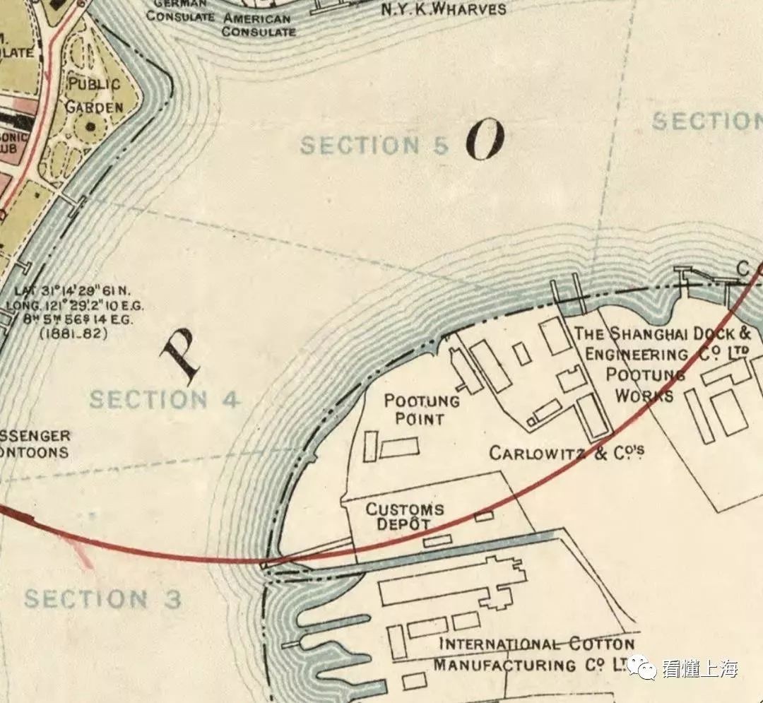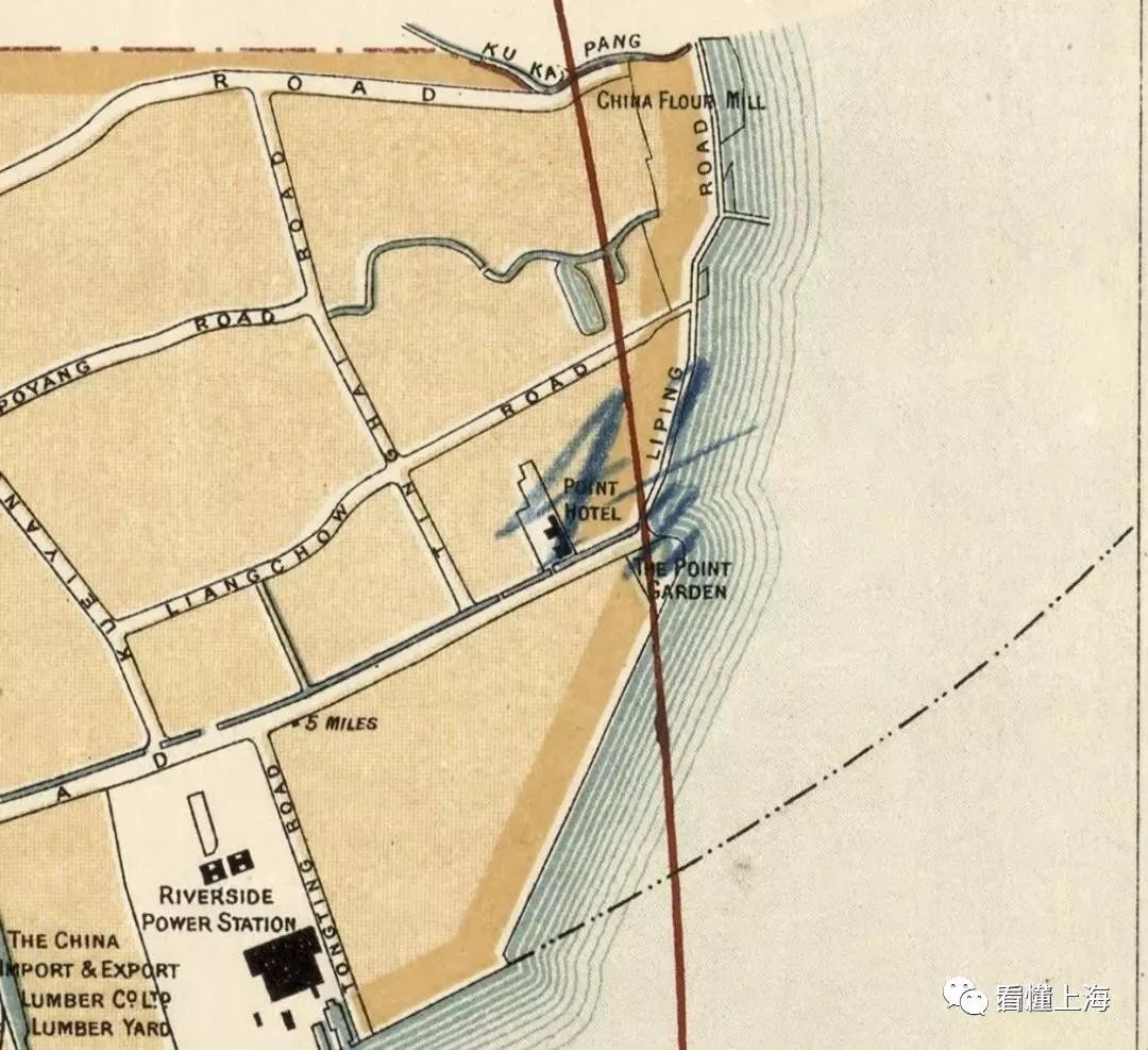 租界当局规划的周家嘴路本是沿着界线之内北缘自西向东行进的,在当时只是完成了大连路以西的部分,而再往东可能因为受制于此,中段一直还处于规划状态。然而我们把视线移向最东端,也就是真正的“周家嘴”附近,还发现了一段“Point Road”。